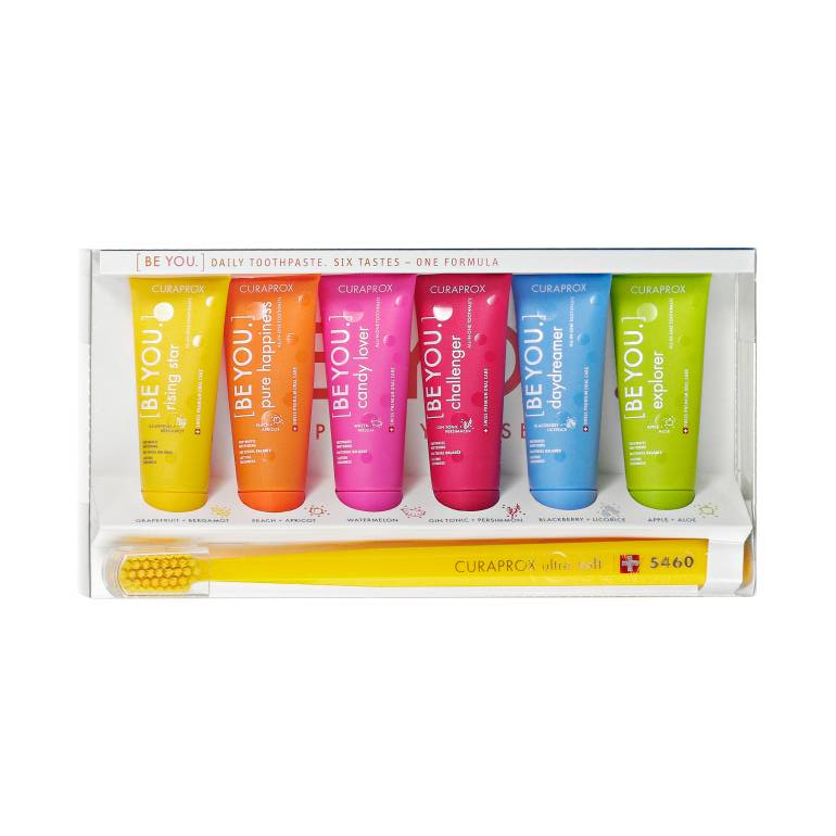 - Všech šest příchutí past Curaprox Be You v jednom balení