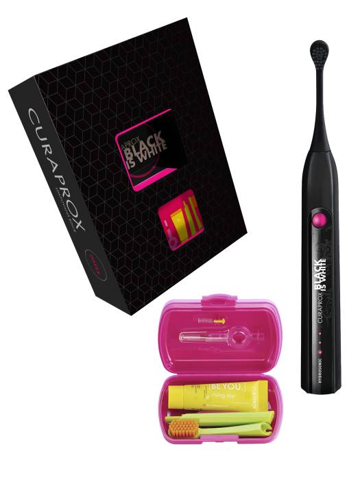 Curaprox Hydrosonic Black is White sonický kartáček + cestovní sada