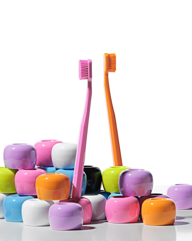 Se stojánkem na kartáček Curaprox v oranžové barvě svůj kartáček v koupelně vždycky poznáte. Stojánek je keramický, má tedy vyšší hmotnost a zajišťuje tak stabilní umístění kartáčku.