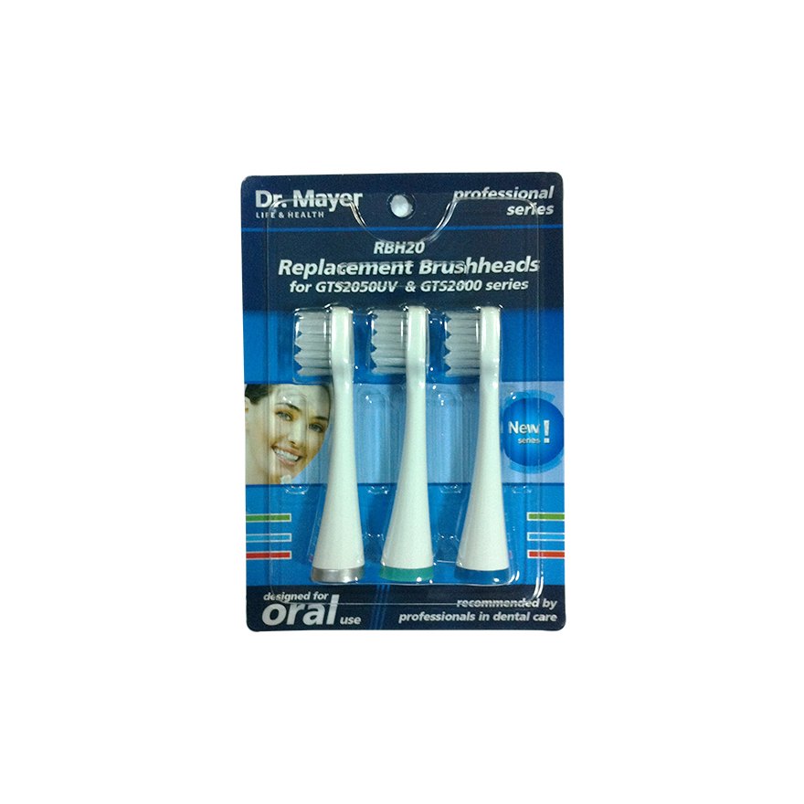 Náhradní kartáčky RBH20 jsou hlavice se středně měkkými vlákny pro sonické kartáčky Dr. Mayer GTS2050UV, GTS2000 a GTS2060. Hlavice jsou vybavené rozlišovacími kroužky.