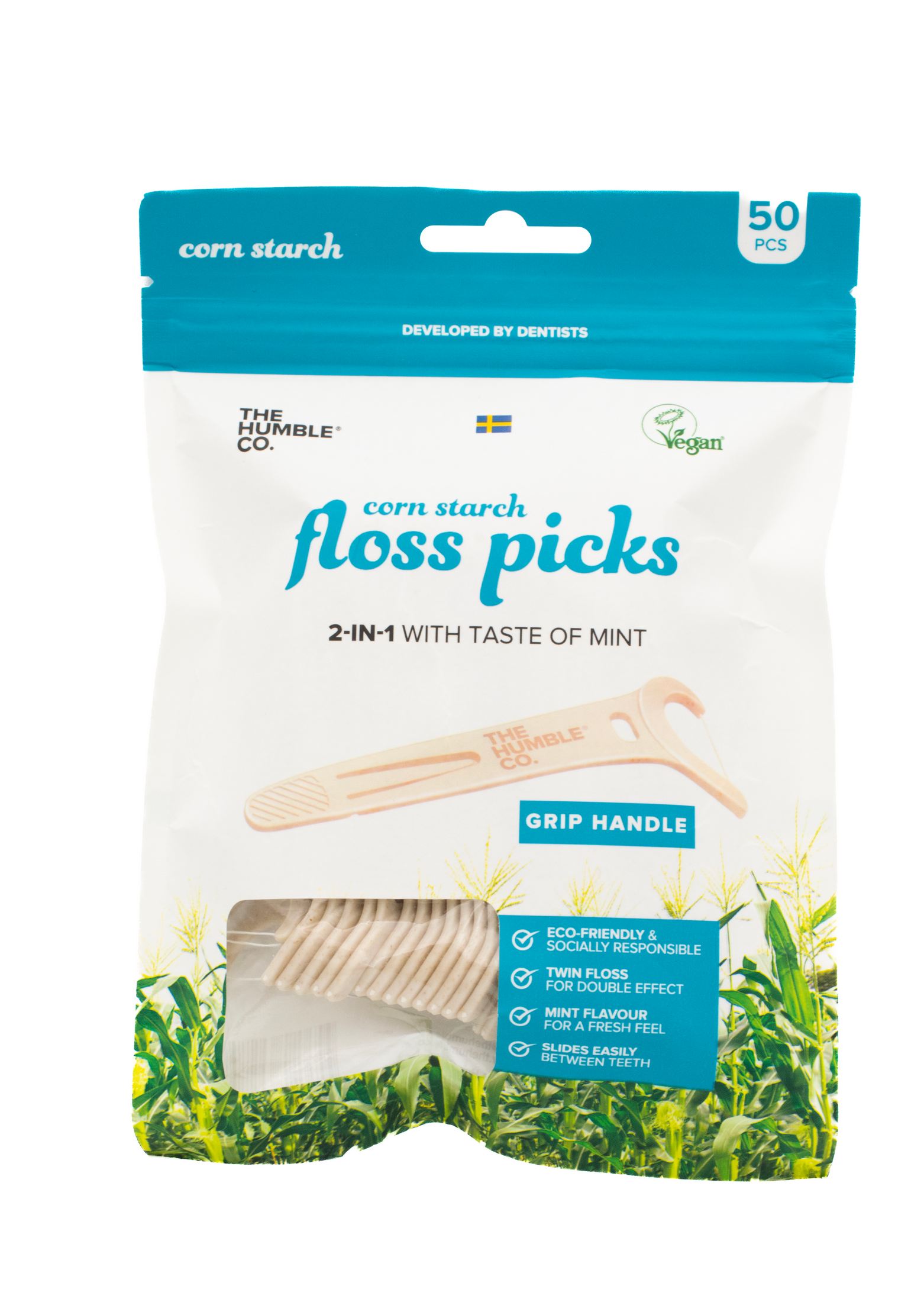 - 50× zubní nit s párátkem Humble Floss Picks Grip Handle Mint