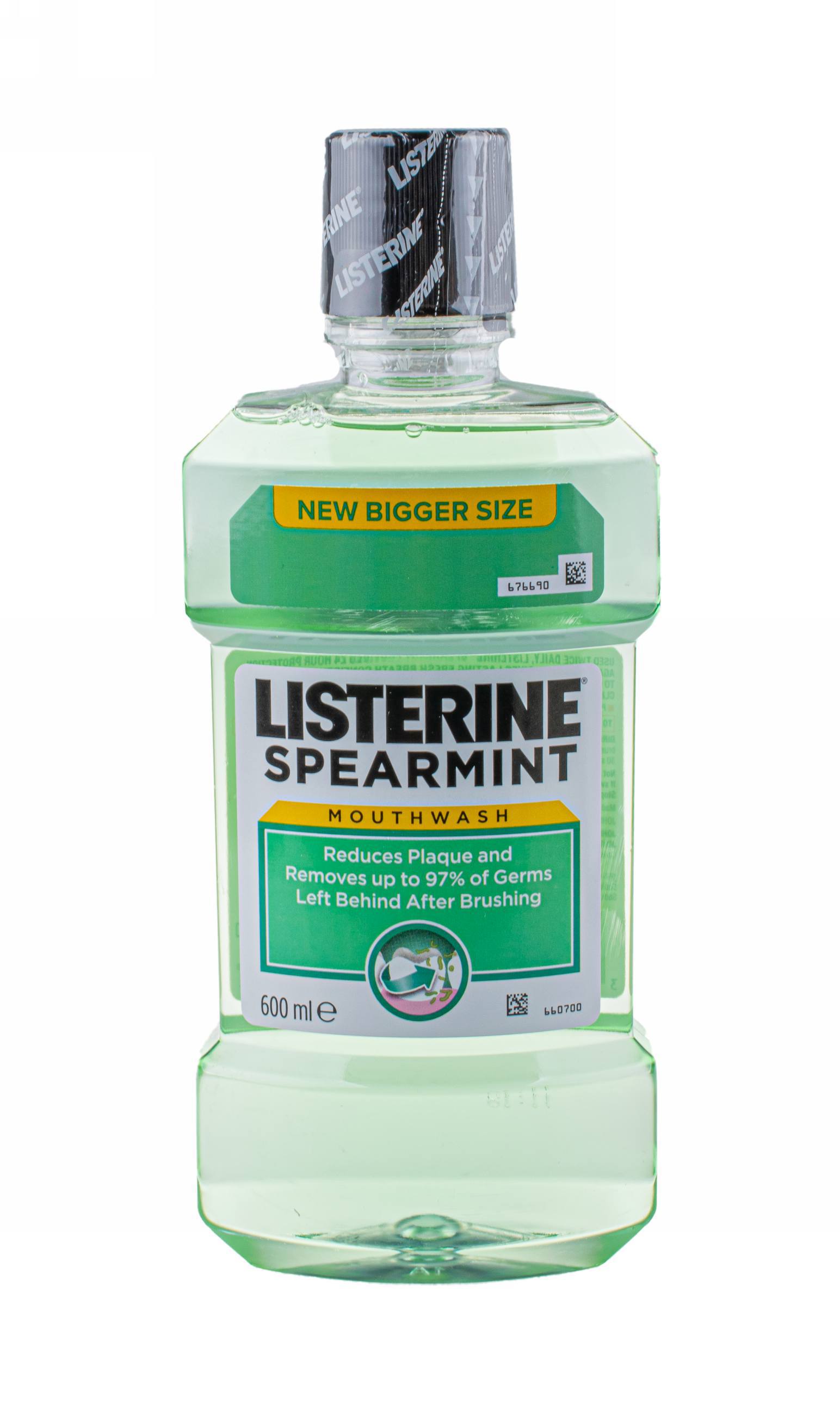 Ústní voda Listerine Spearmint poskytuje účinnou ochranu proti zubnímu plaku a pomáhá odstranit bakterie z mezizubních prostor. Zanechá vaše ústa svěží díky příjemné příchuti máty. Obsahuje alkohol.