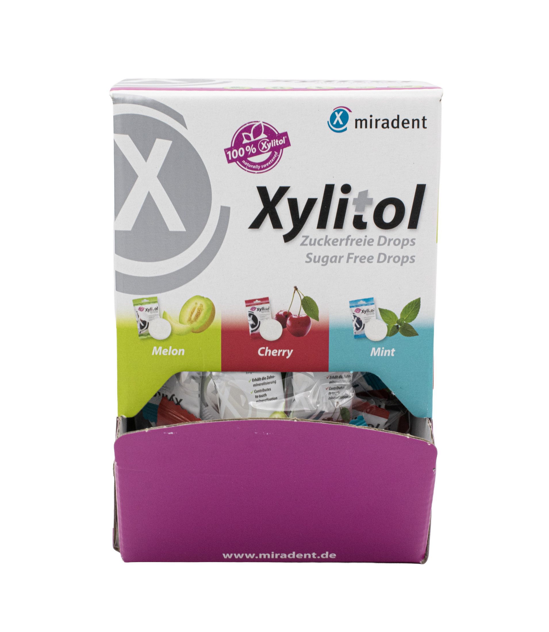 - 100× pastilka Miradent Xylitol mix (třešeň, máta, meloun)