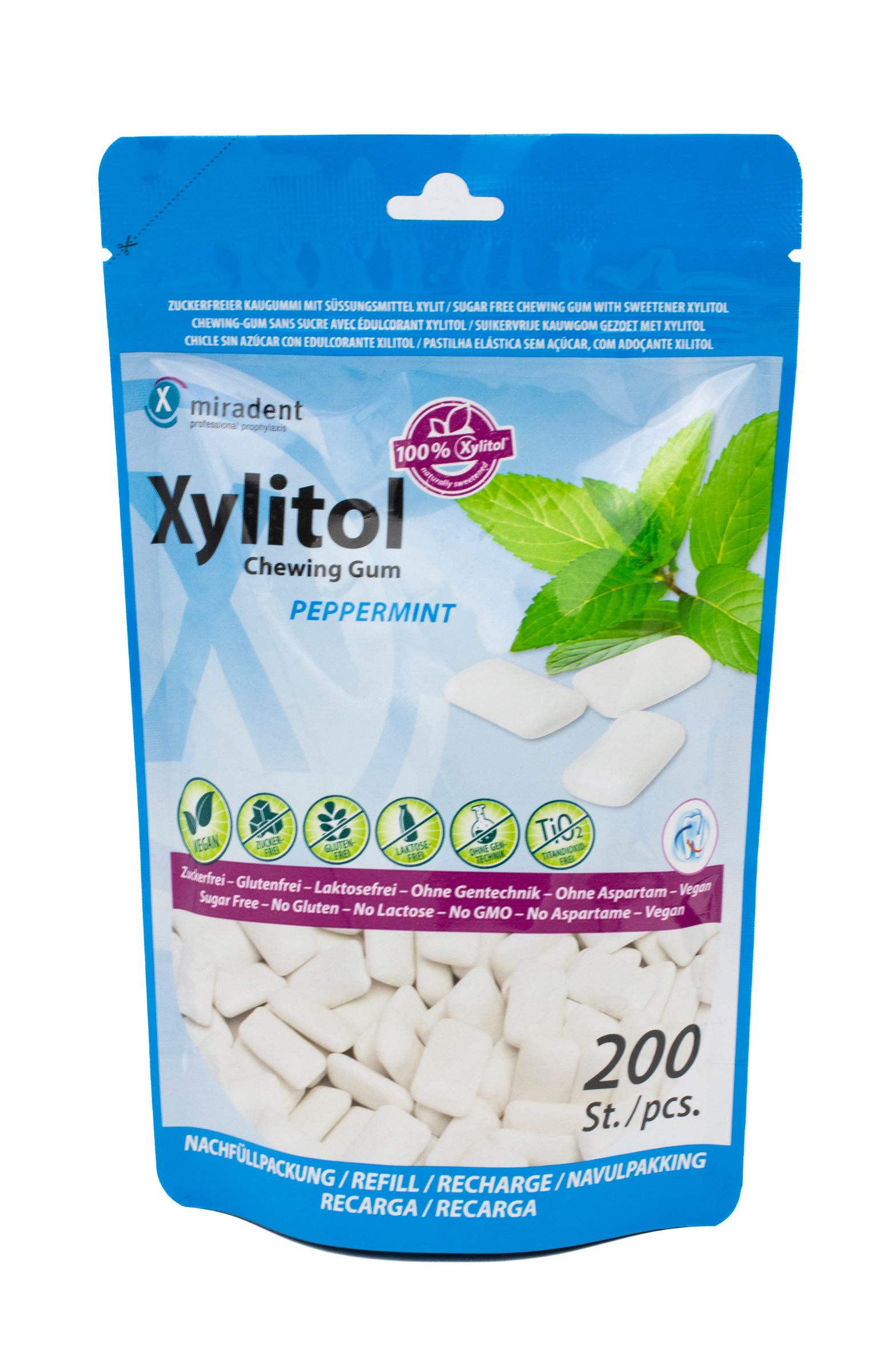 Miradent Xylitol žvýkačky PEPPERMINT 200 ks