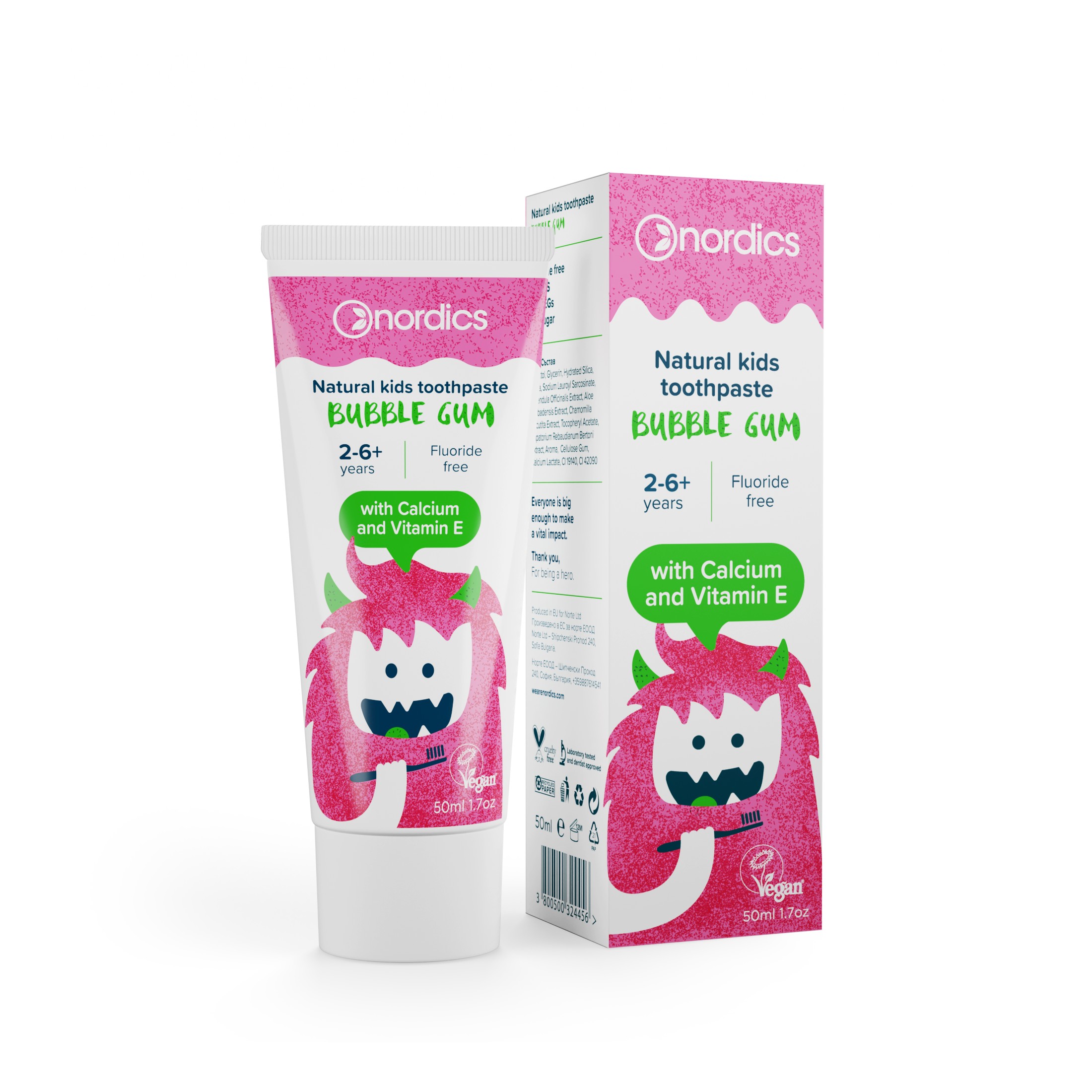 Nordics Kids Bubble Gum dětská zubní pasta 50 ml
