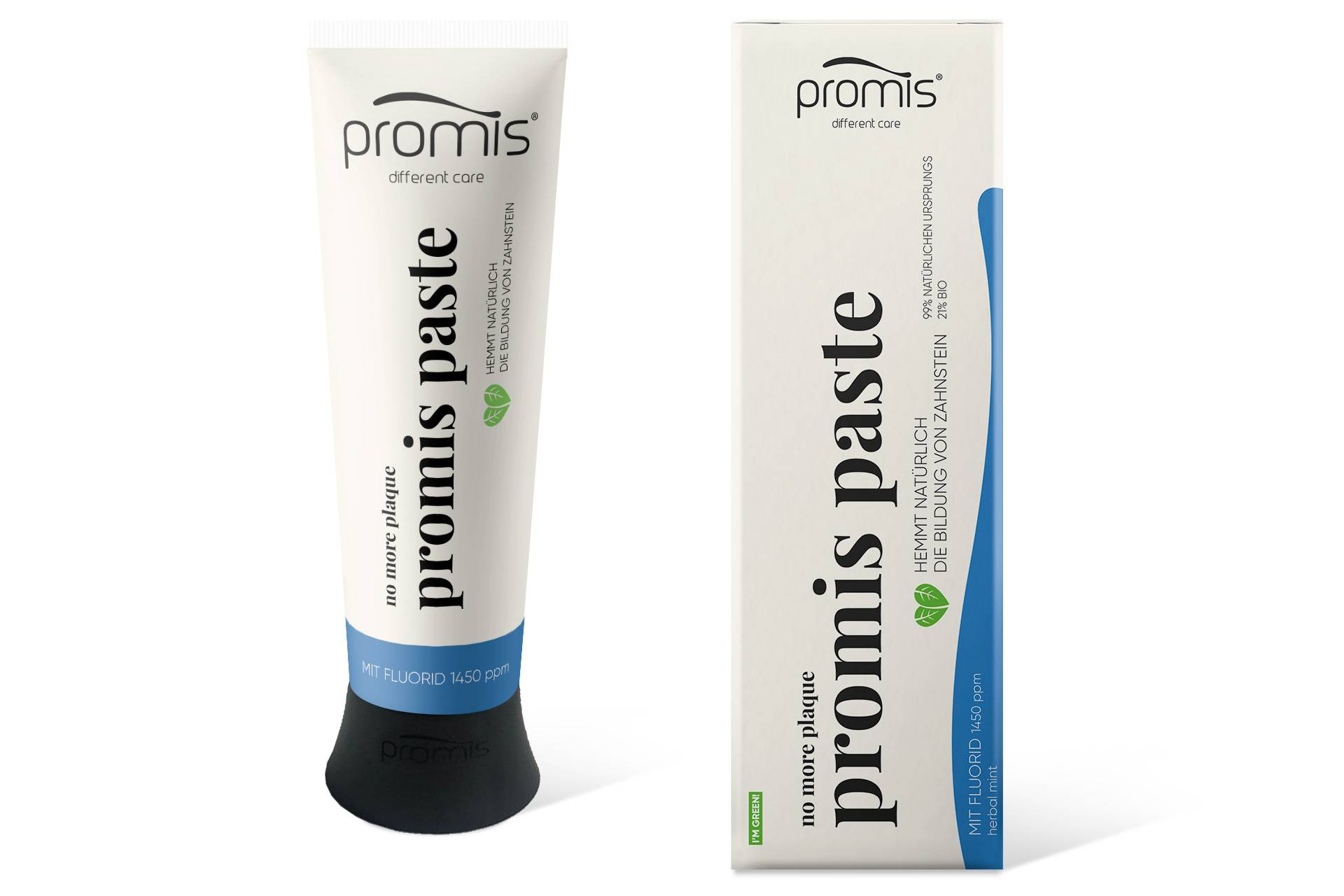 Zubní pasta Promis Fluoride s přírodními a organickými složkami důkladně odstraňuje zubní plak a brání tvorbě zubního kamene. Díky bylinné mátové příchuti dlouhodobě osvěží dech. Tuba je vyrobena z cukrové třtiny a obal z recyklovatelného materiálu.