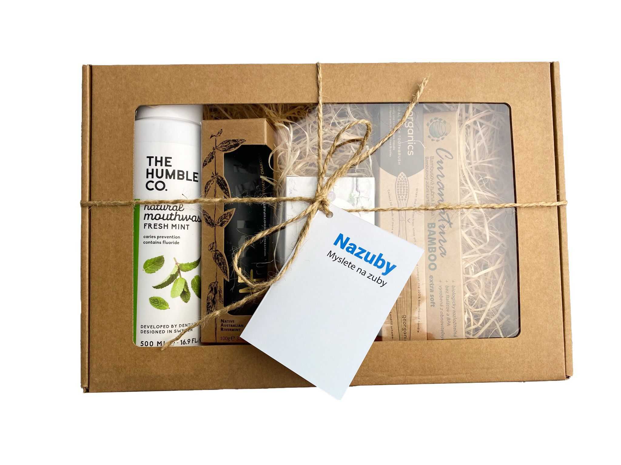 - 1× ústní voda The Humble Fresh Mint – bez alkoholu, s obsahem fluoridů a přírodních extraktů pro dodatečnou péči o zuby a dásně