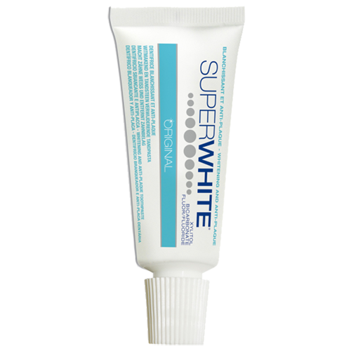 Bělící zubní pasta Superwhite Original francouzského výrobce obsahuje přídavky jedlé sody, xylitolu a fluoridu pro každodenní použití. Poskytuje dlouhotrvající výsledky a současně napomáhá posílit a zlepšit zubní sklovinu.