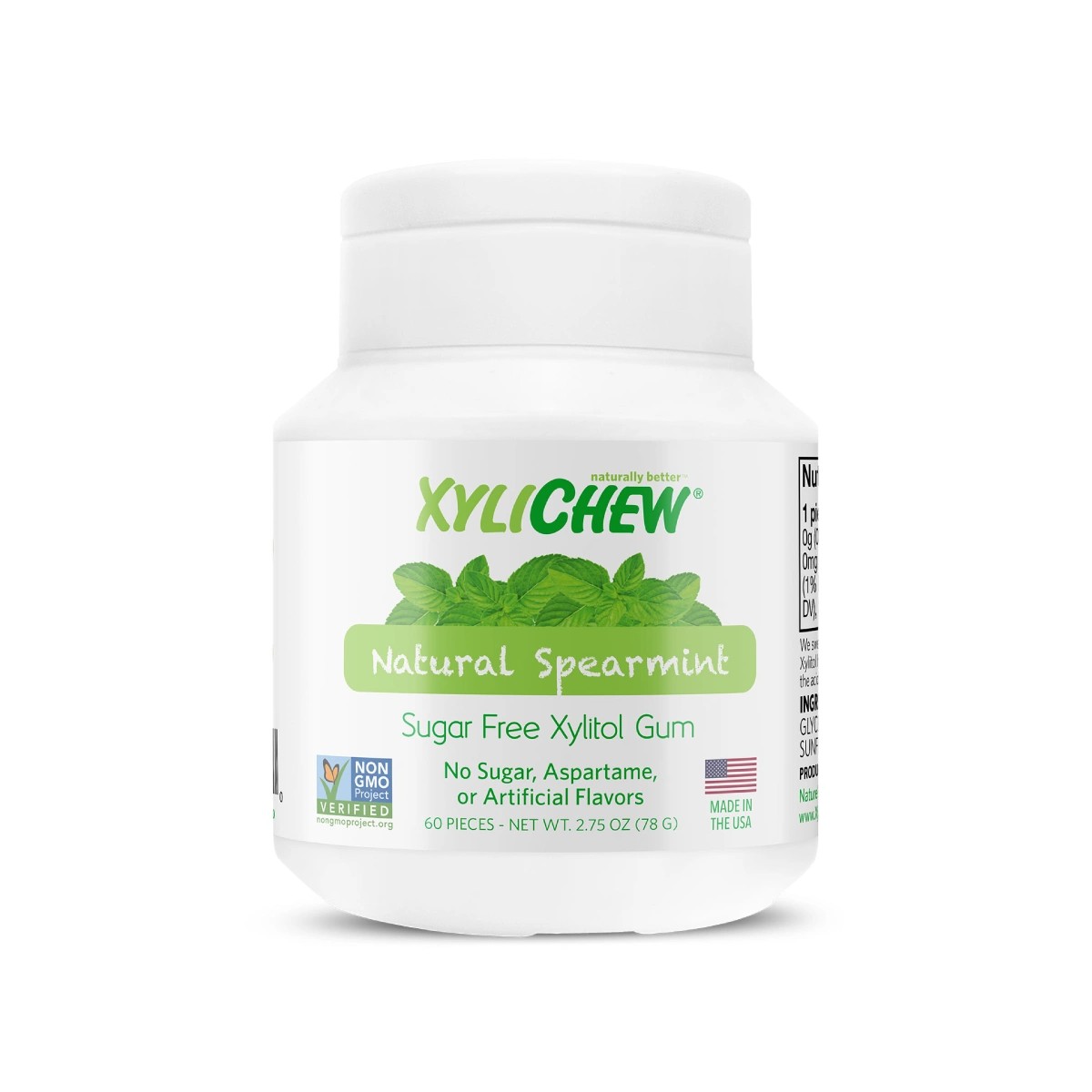 • Xylitol, gumová báze, přírodní ochucovadla, rostlinný glycerin, arabská guma, slunečnicový lecitin, karnaubský vosk. Vyrobeno v zařízení, které používá sóju.